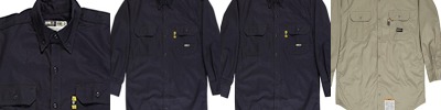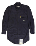 7 oz., 88% cotton, 12% nylon flame resistant twill; Meets the requirements of ASTM F1506, NFPA 70E, NFPA2112, and OSHA 1910.269; Button front; Pockets with flaps and button closures; Pencil slot on left pocket; Triple-needle stitched main seams; Adjustable button cuffs;