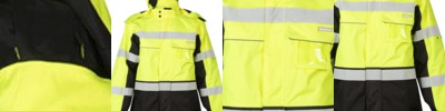 10 oz., 88% cotton cotton, 12% nylon flame resistant duck; Heavyweight quilted flame resistant twill; Meets the requirements of ASTM F1506, NFPA 70E, NFPA2112, and OSHA 1910.269; Heavy-duty flame resistant brass zipper; Deep bi-swing action back; Two flame resistant lined front patch pockets; Triple-needle stitched main seams;