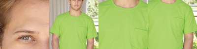 6 oz., 100% USA cotton, 18 singles; Heather Grey is 90% USA cotton/10% polyester; Charcoal Grey and Safety Green are 50% USA cotton/50% polyester; Shoulder-to-shoulder neck tape; 1" double-needle stitched sleeve and bottom hems; Tear away label; 7/8" Seamless non-topstitched collar; Quarter-turned to eliminate center crease; Forward-thrusted shoulder seam for comfortable neck fit; Classic fit;