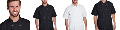 5.8 oz., 65% polyester, 35% cotton; hard-wearing and durable chef's jacket; Double Pen pocket on left sleeve; Soft hand feel; Mandarin collar stand with topstitching; Ten press stud front fasteners; Oeko-Tex® Standard 100 certified; WRAP certified;