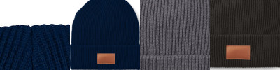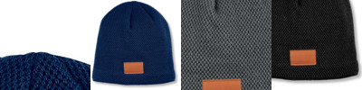 • 100% Acrylic rib knit beanie with PU faux leather patch on front cuff