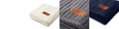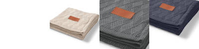 - Double layer blanket made out of heathered Rayon Fiber Polyester and Nylon blend knitted on a trellis pattern and a coz.y Polyester lambswool Sherpa (180 GSM) backing and faux Leather Thermo PU patch