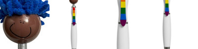 • Click-action ballpoint pen with smiley face, tie-shaped clip and mop-top hair