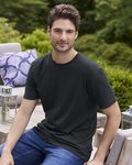 Feel your impact in this crazy-soft sustainable tee that uses an equivalent of up to 6 recycled plastic water bottles. 4.2-ounce, 50% Repreve® polyester from recycled plastic bottles/25% organic, US-grown cotton/25% Tencel ™ Modal, 30 singles 25% Repreve® polyester from recycled plastic bottles/25% black polyester/25% organic, US-grown cotton/25% Tencel ™ Modal (Aluminum Grey, Vino Red) 1x1 rib knit neck Shoulder to shoulder taping Side seams Recycled tear-away label