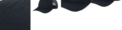 Fabric 100% cotton twill front panels and bill (Solids), 65/35 polyester/cotton twill front panels and bill (Heather Grey) 100% polyester mesh mid and back panels