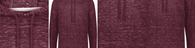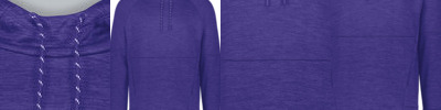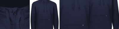 • Scuba shaped 3-piece hood with contrast color lining and drawcord