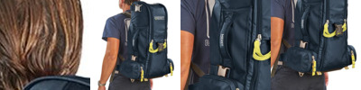 • Hideaway backpack strap harness system easily distributes weight for maximum comfort