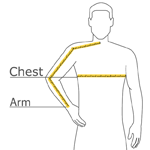 | Chest | 32-34 | 35-37 | 38-40 | 41-43 | 44-46 | 47-49 | 50-53 | 54-57 | 58-60 | 61-63 |