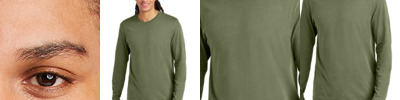- 7.7-ounce, 81% recycled polyester/8% polyester/11% spandex interlock knit (heathers)