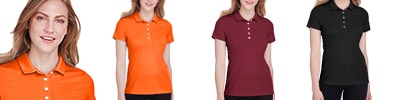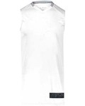 100% polyester wicking knit with True Hue Technology® that helps prevent dye migration; Moisture-wicking; Updated tailored fit; Tagless label; Outside locker label; V-neck collar; Designed to be NFHS compliant;